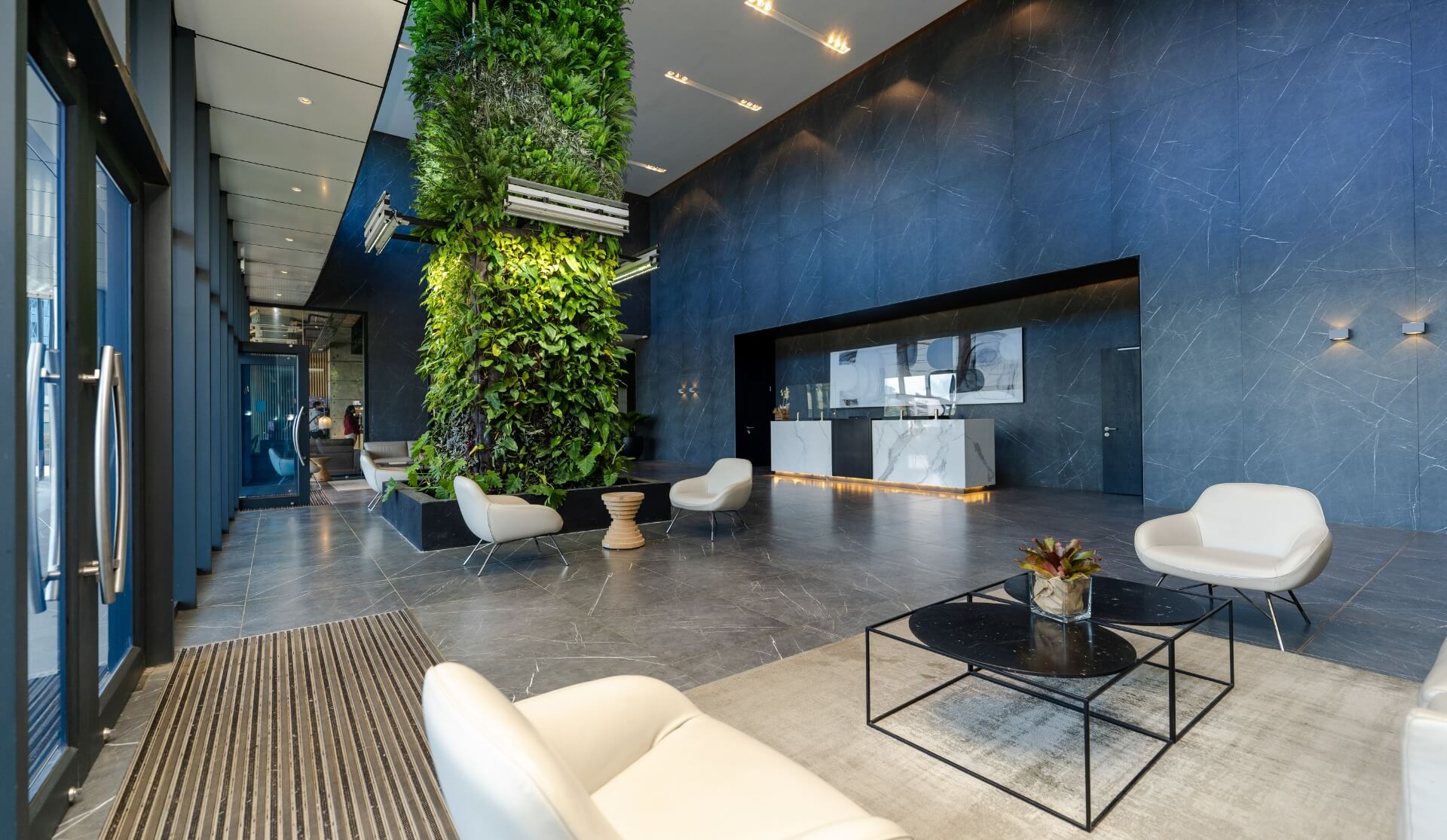 1 Exchange Square is an iconic office building in the heart of Ebene's business hub, completed in 2018. It comprises of two towers totalling 27,000 sqm with 600+ parking spaces. The building features three interconnected towers, offering up to 2,700 sqm on a single floor plate, ideal for large corporations. The occupants benefit from a fully equipped gym and an on-site cafeteria. The building's design is sustainable, with an East-West orientation to reduce direct sunlight exposure, energy-saving lighting and HVAC systems, and solar panels for electricity production. 1 Exchange Square is a distinctive and sustainable business hub.